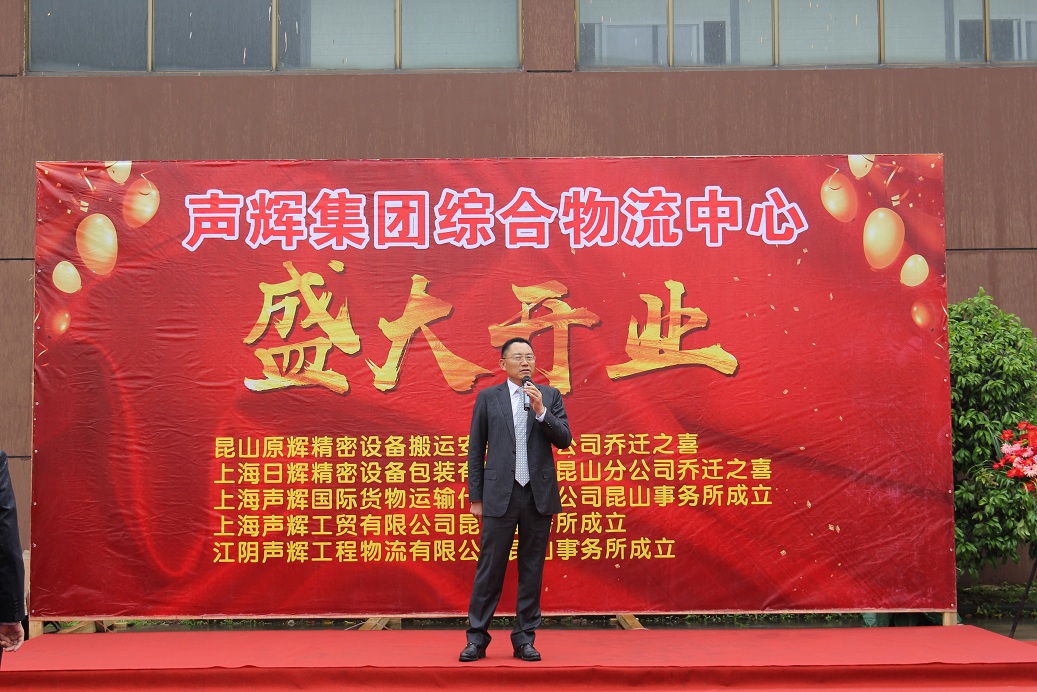 2019年4月30日8时18分,声辉集团综合物流中心在昆山市高新区中华园路1899号盛大开业,集团董事长兼CEO龚克锐先生、副总经理吴君飞先生等为物流中心揭幕剪彩,集团下属各公司领导及员工代表出席了开业仪式。